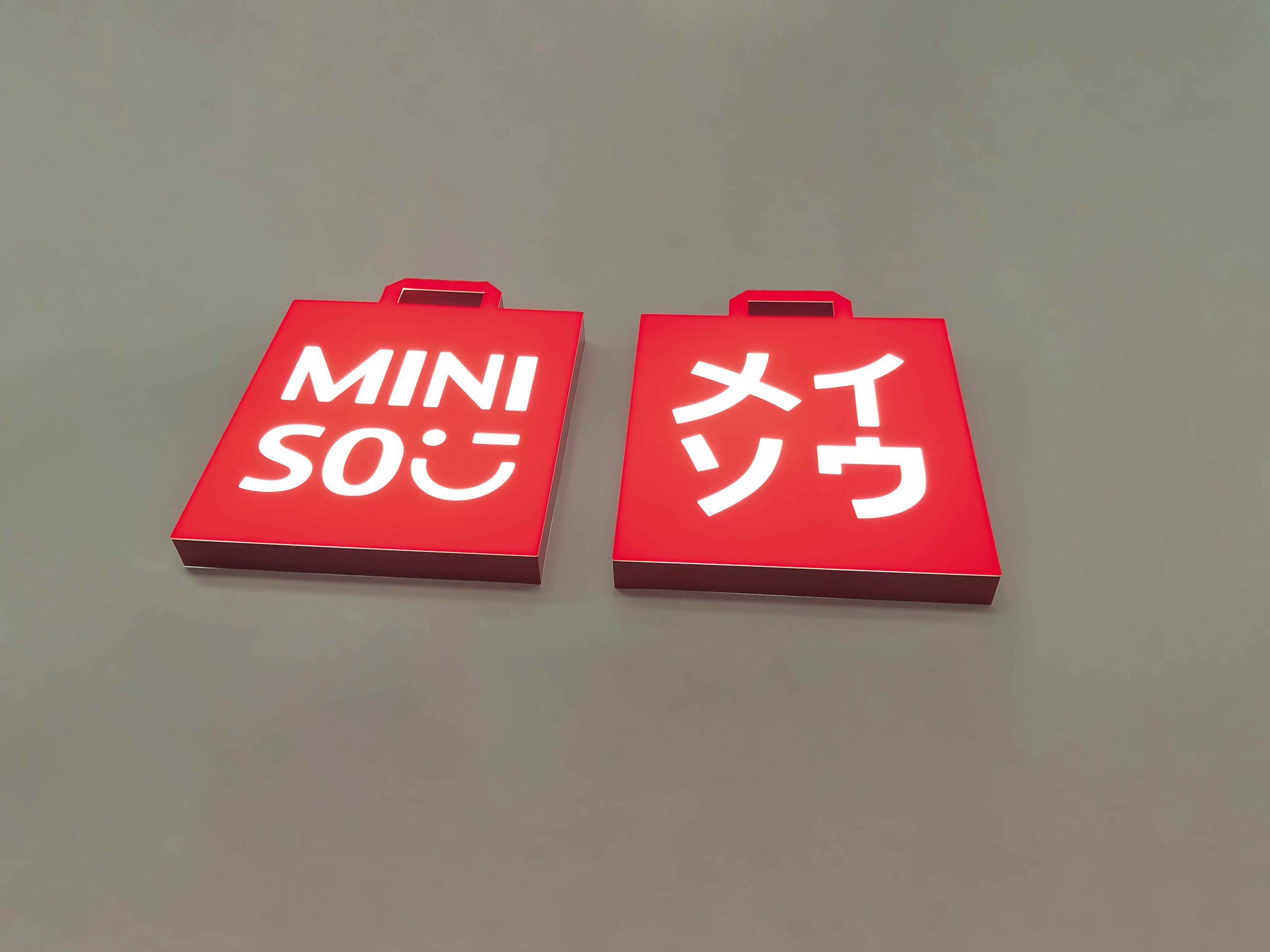 De lichtbakken werden rond de hoofdlogo’s van Miniso geplaatst en vormden een centraal aandachtspunt in het ontwerpschema. De levendige rode logo’s werden op een hoogte van 1 m aangebracht en zorgen voor een opvallend contrast en een niet te missen retail design. De pictogrammen werden verlicht met SloanLED’s BrightLINE LED systeem om de gesjabloneerde kunstwerken te verlichten.